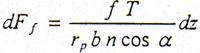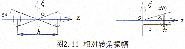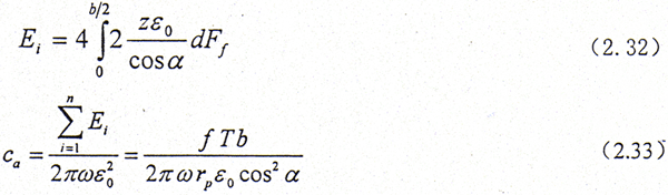 設(shè)內(nèi)、外齒輪軸線間有一相對(duì)轉(zhuǎn)角振幅ε0,如圖2.11所示,在齒z處dz上的摩擦力,此處的位移為zε0/cosα。